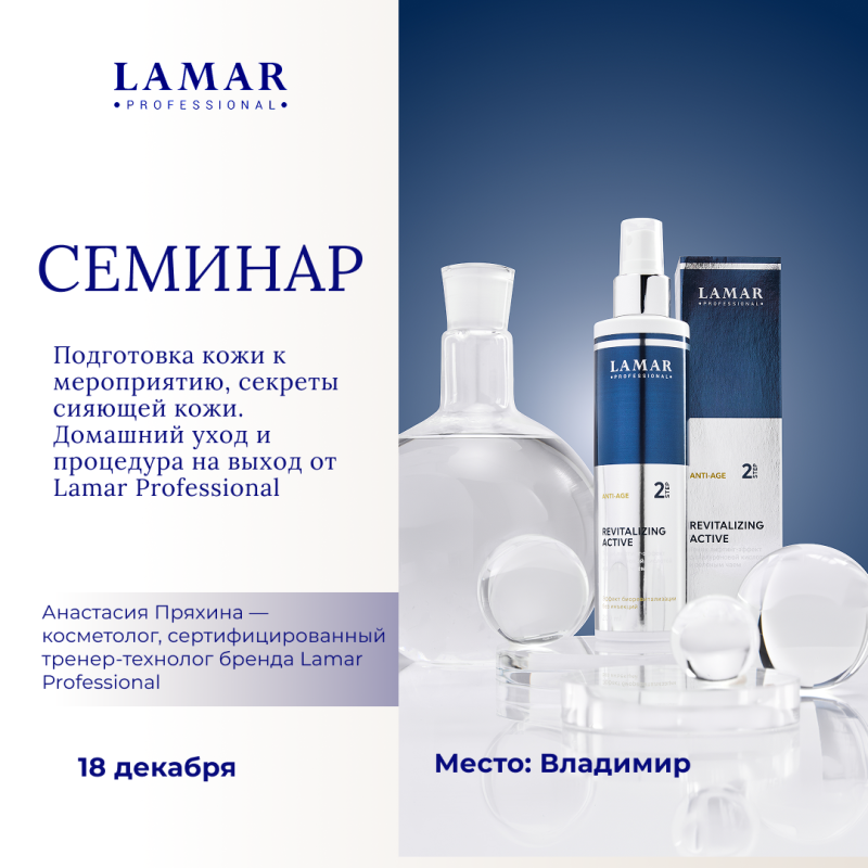 Спикер: Анастасия Пряхина — косметолог, сертифицированный тренер-технолог бренда Lamar ProfessionalПрограмма семинара: